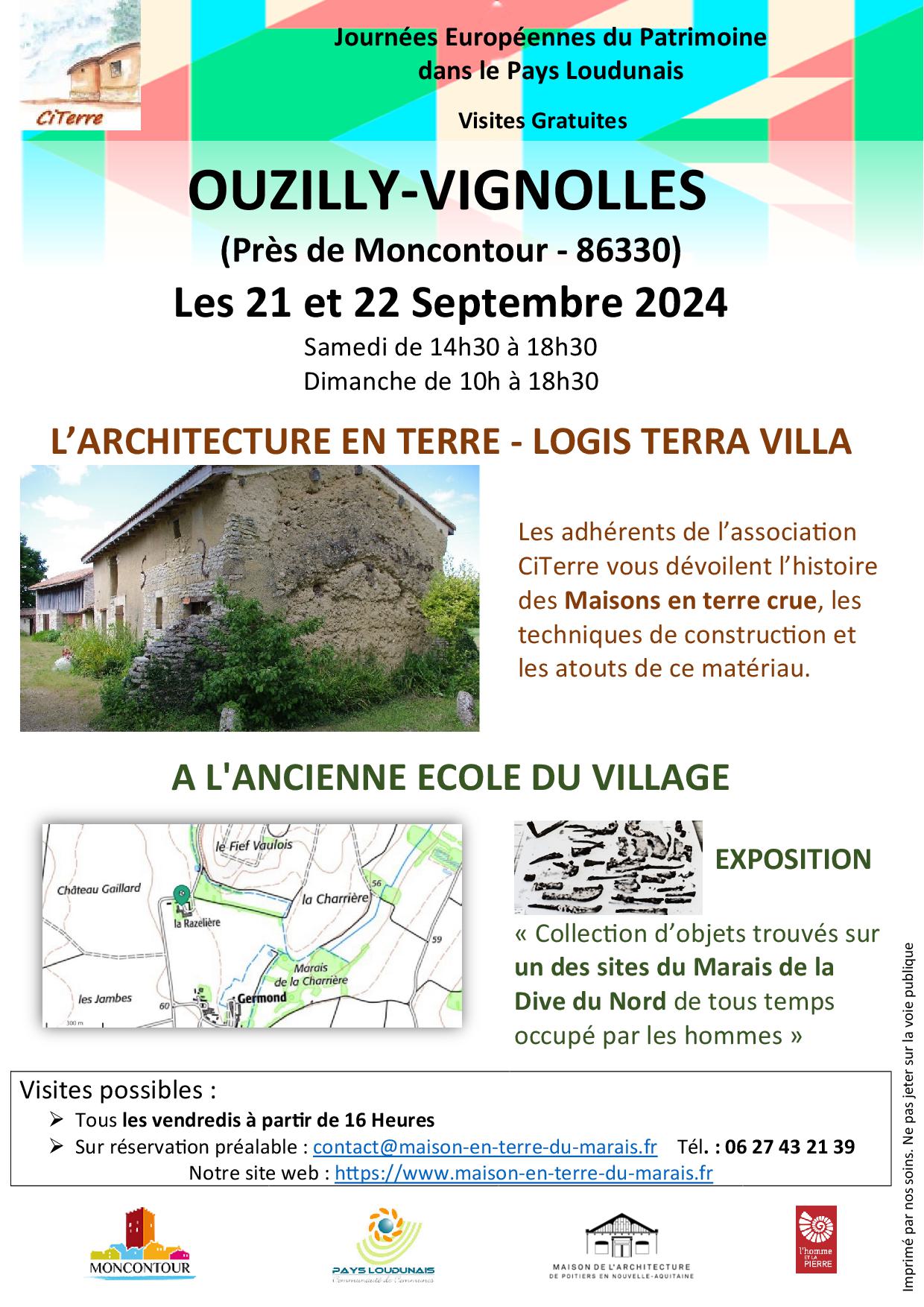 L’Association CiTerre participe aux “Journées Européennes du Patrimoine dans le Pays Loudunais” les 21 et 22 Septembre 2024 à OUZILLY-VIGNOLLES (Près de Moncontour – 86330)